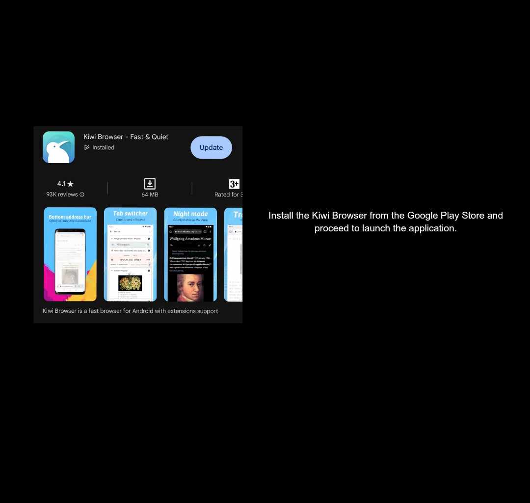 1. Install the Kiwi Browser from the Google Play Store and proceed to launch the application.