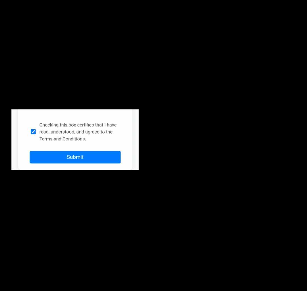 12. Finally, having carefully reviewed the Terms and Conditions and Privacy Policy, check the box to confirm your understanding and submit the information.