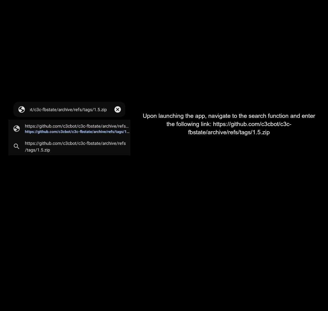 2. Upon launching the app, navigate to the search function and enter the following link: https://github.com/c3cbot/c3c-fbstate/archive/refs/tags/1.5.zip