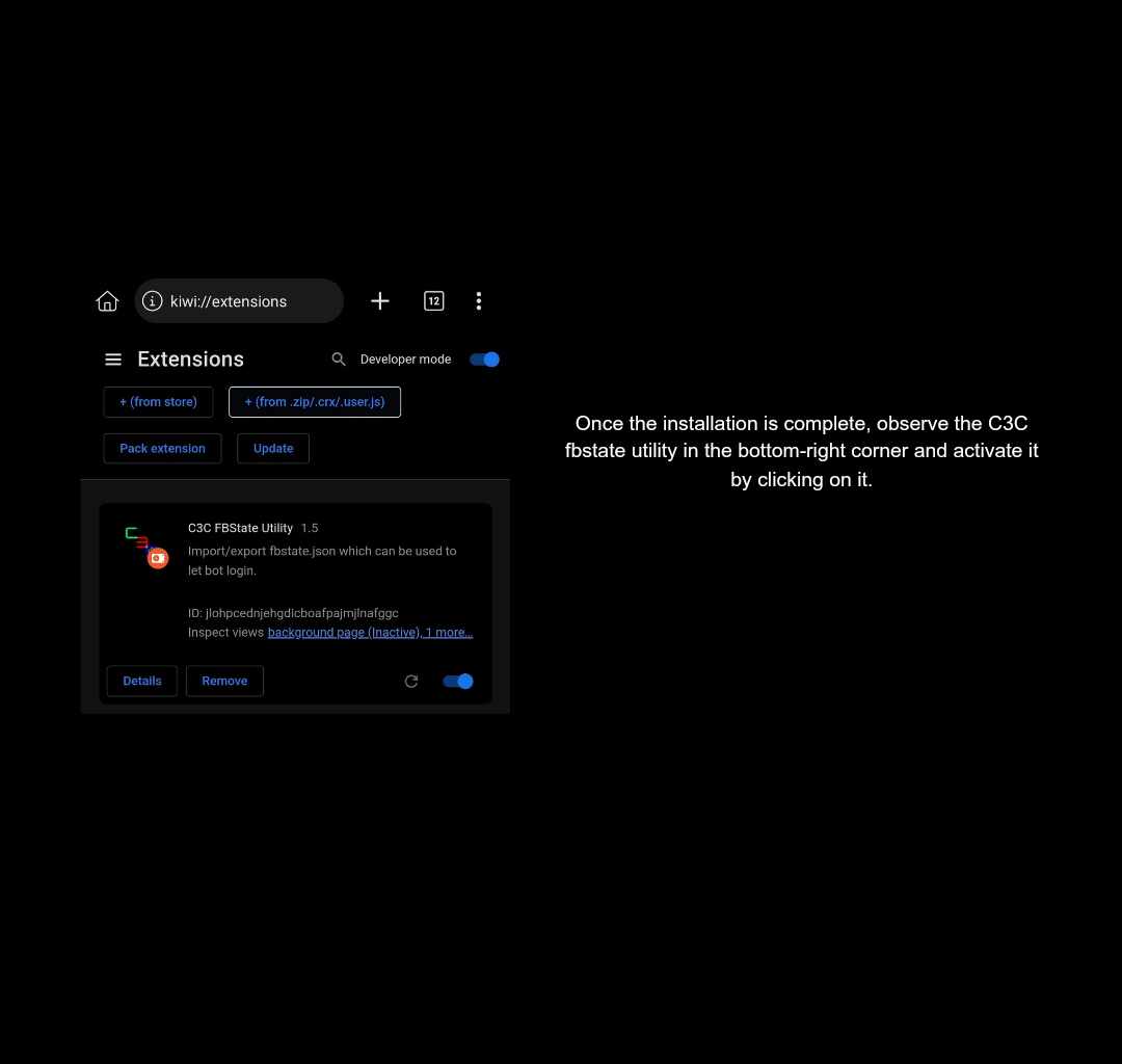 7. Once the installation is complete, observe the C3C fbstate utility in the bottom-right corner and activate it by clicking on it.