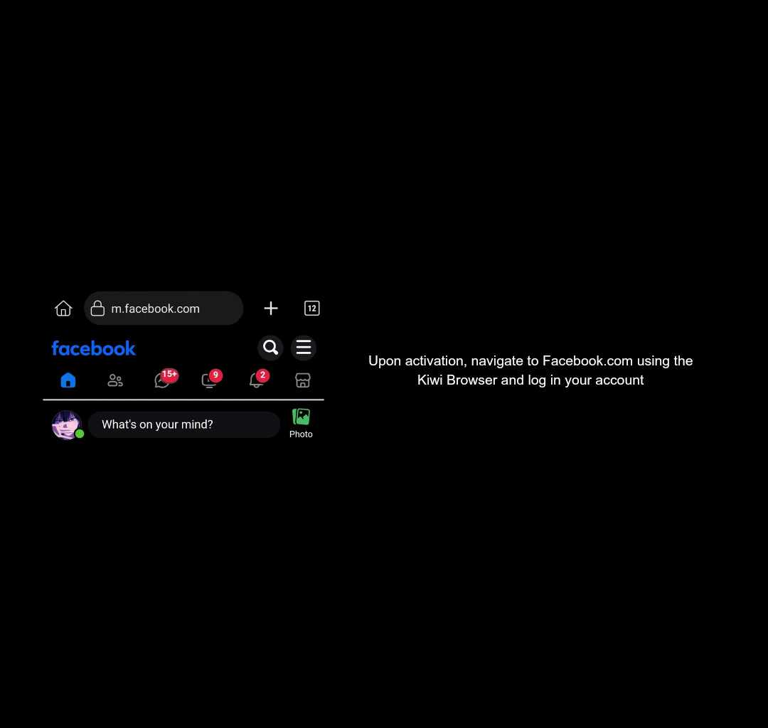 8. Upon activation, navigate to Facebook.com using the Kiwi Browser and log in your account.